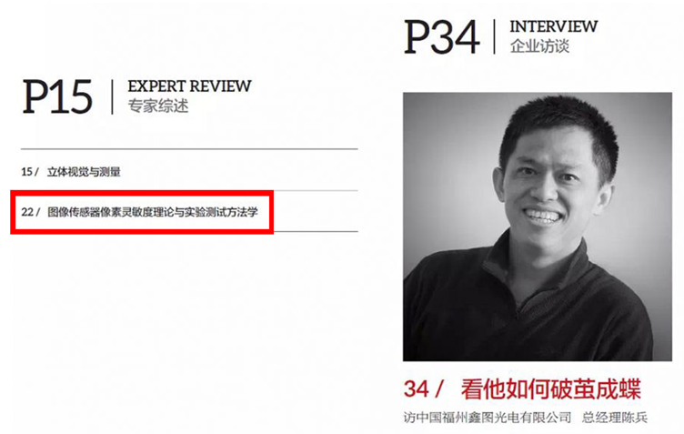 July 2015, "Machine Vision" magazine published a feature on Mr. Chen Bing, general manager of Tucsen. Awei Zhang, Tucsen’s product manager wrote a paper entitled, "Image sensor pixel sensitivity theory and experimental tests”, the paper briefly introduced the European Machine Vision Association EMVA1288, the advantages and disadvantages of camera sensitivity and signal-to-noise ratio were presented. The theoretical principle of temporal correlation apparent pixel sensitivity (SNR) was elaborated and discussed, showing its superiority as the criterion of sensitivity.