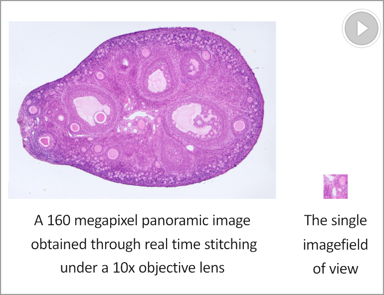 · Real-time stitching helps to obtain a super wide FOV image automatically, by moving the microscope stage.