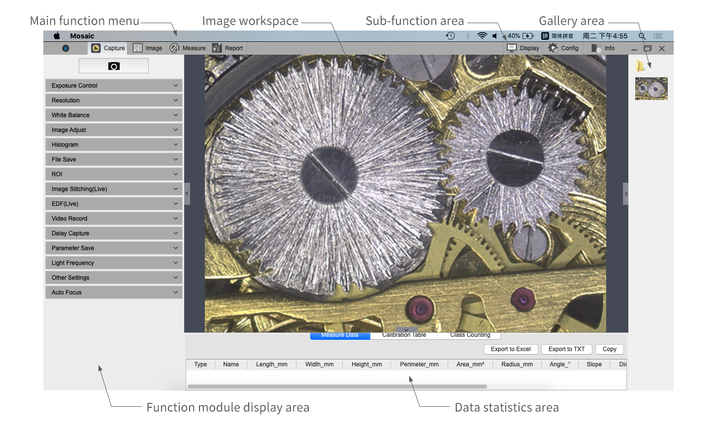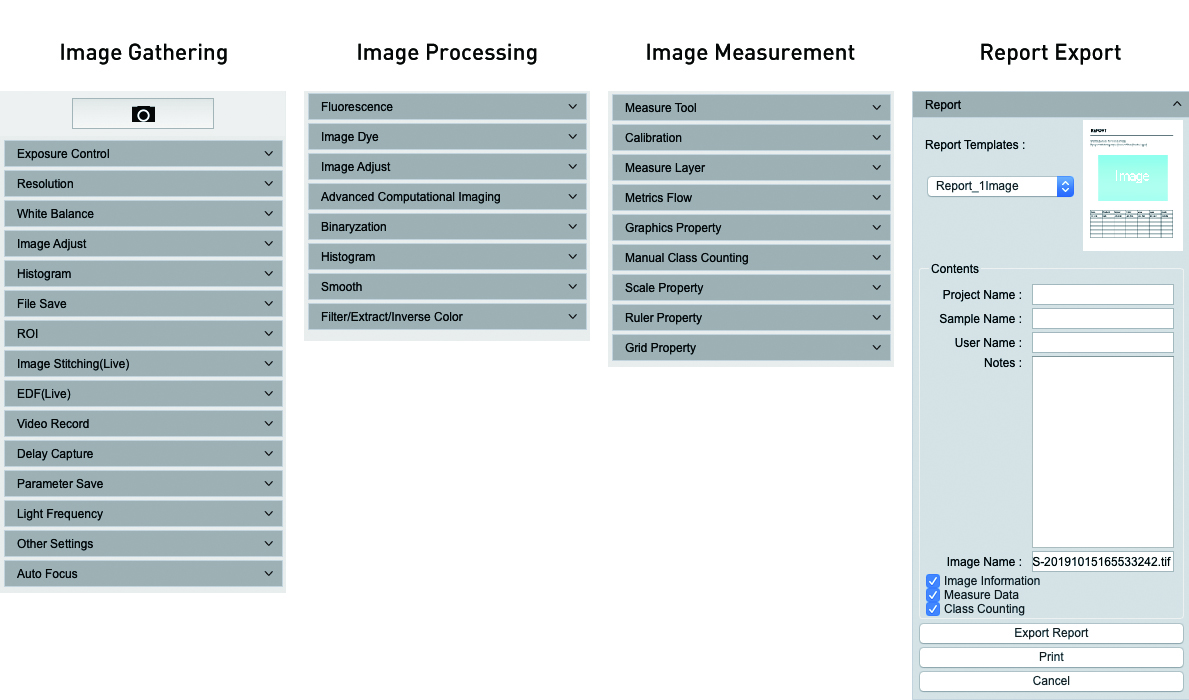 Mosaic 2.0 is a suite of powerful software that integrates the control of microscopy imaging cameras, the image calculations, the image processing and the workflow of measuring and counting, providing powerful capabilities for Apple's MAC OS and Microsoft Windows users.