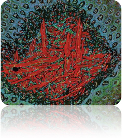 The fins and goat bone: two picture shows, which are dense tissue structure of the vertebrate body. Ramat Gan, Israel, Samuel Silberman Shamuel Silberman put a fish fin bone magnified a hundred times, and there was on top of the mottled autumn (using fiber optic lighting technology). In order to observe the bone formation changes in bone mineral density and mineral content of the increasing degree, the city of Tampa, Florida Mo Moffett cancer center mark Lloyd (Mark Lloyd) and Noel Clark (Noel Clark) the goat bone enlarged four times (see chart, Hirono microscopy).