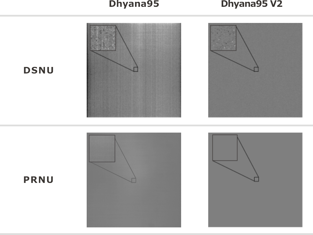 Dhyana95 V2 now can provide a superior background for quantitative analysis applicaitons. The DSNU/PRNU have reached the international optimum of 0.2e- and 0.3% respectively, as the problems from sensor production process, such as edge glow, dead pixels as well as pixel non-uniformity, all have been calibratied accuratly.